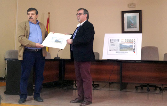 Presentaci贸n del cup贸n de la ONCE en la que aparece como imagen una fotograf铆a de Agudo.